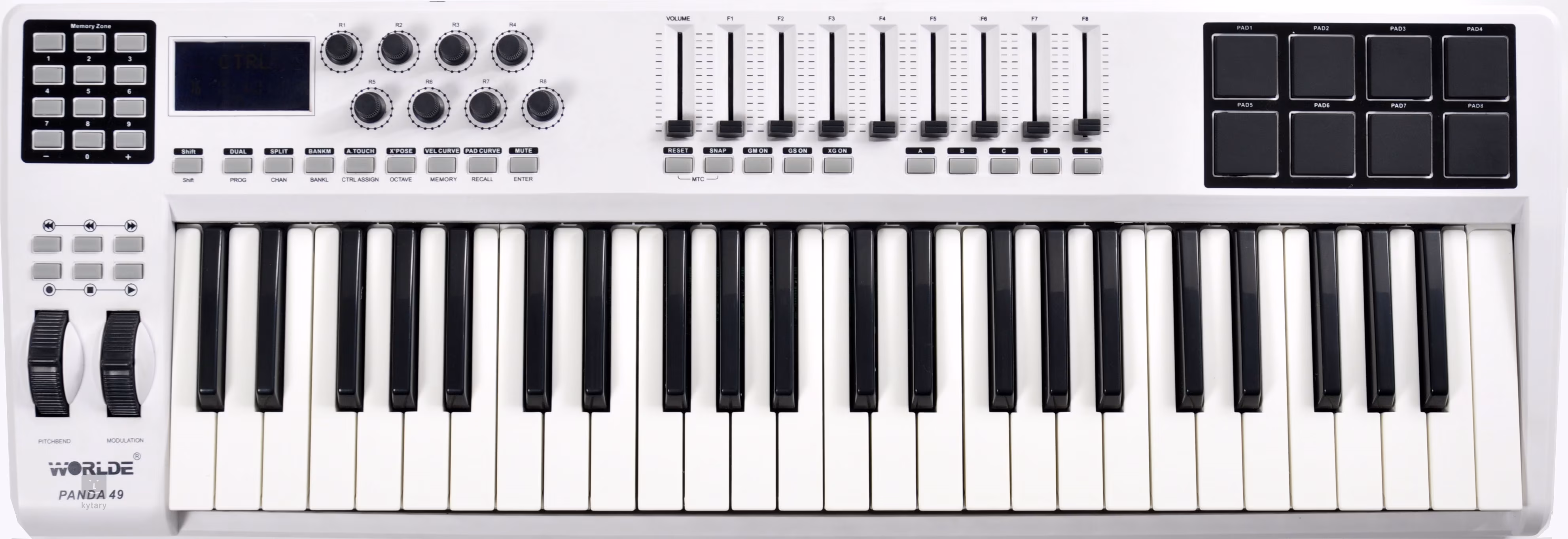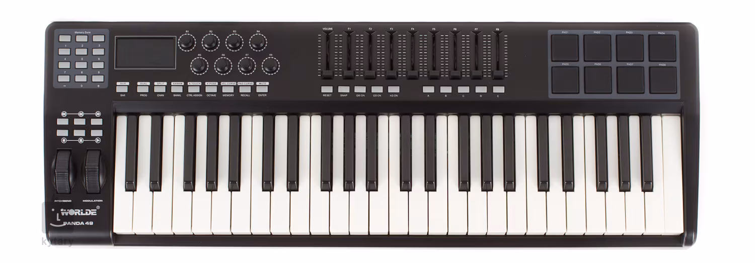 Pod označením Panda 49 se skrývá profesionální MIDI master keyboard, který je schopný komunikovat s Vaším počítačem přes USB. Jde o MIDI klaviaturu s 49 klávesami a 8 rychlostně citlivými pady, která nabízí dostatečné množství ovládacích prvků pro jakoukoli práci.