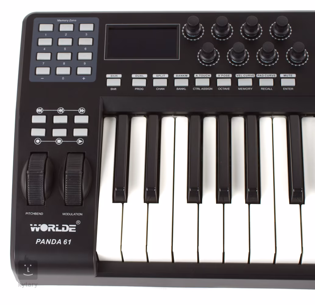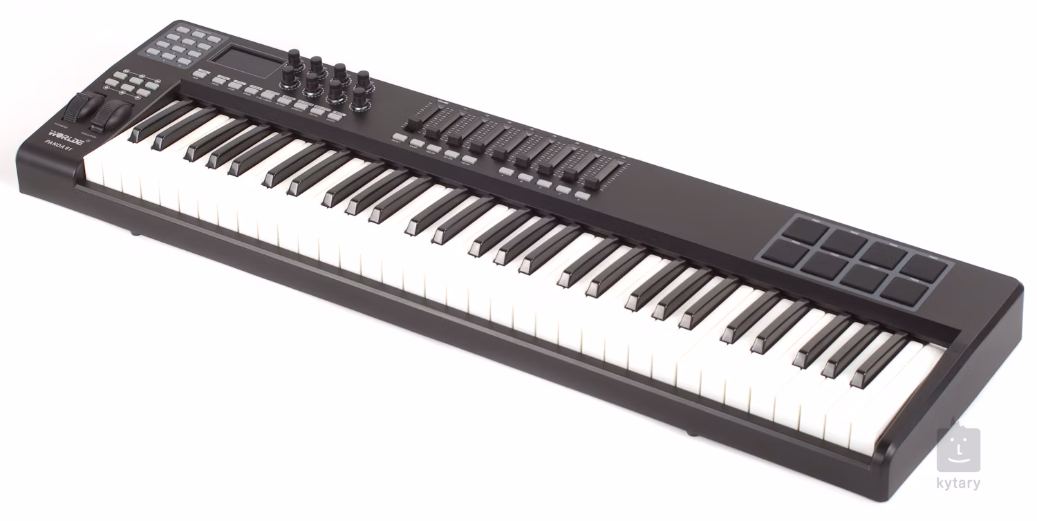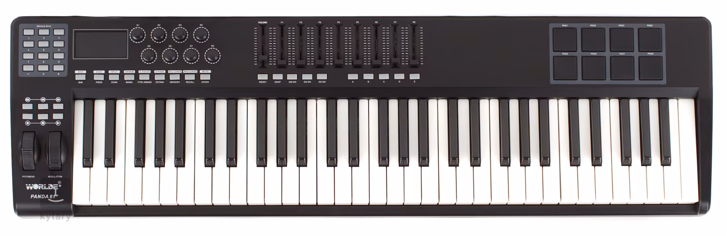 Pod označením Panda 61 se skrývá profesionální MIDI master keyboard, který je schopný komunikovat s Vaším počítačem přes USB. Jde o MIDI klaviaturu s 61 klávesami a 8 rychlostně citlivými pady, která nabízí dostatečné množství ovládacích prvků pro jakoukoli práci.