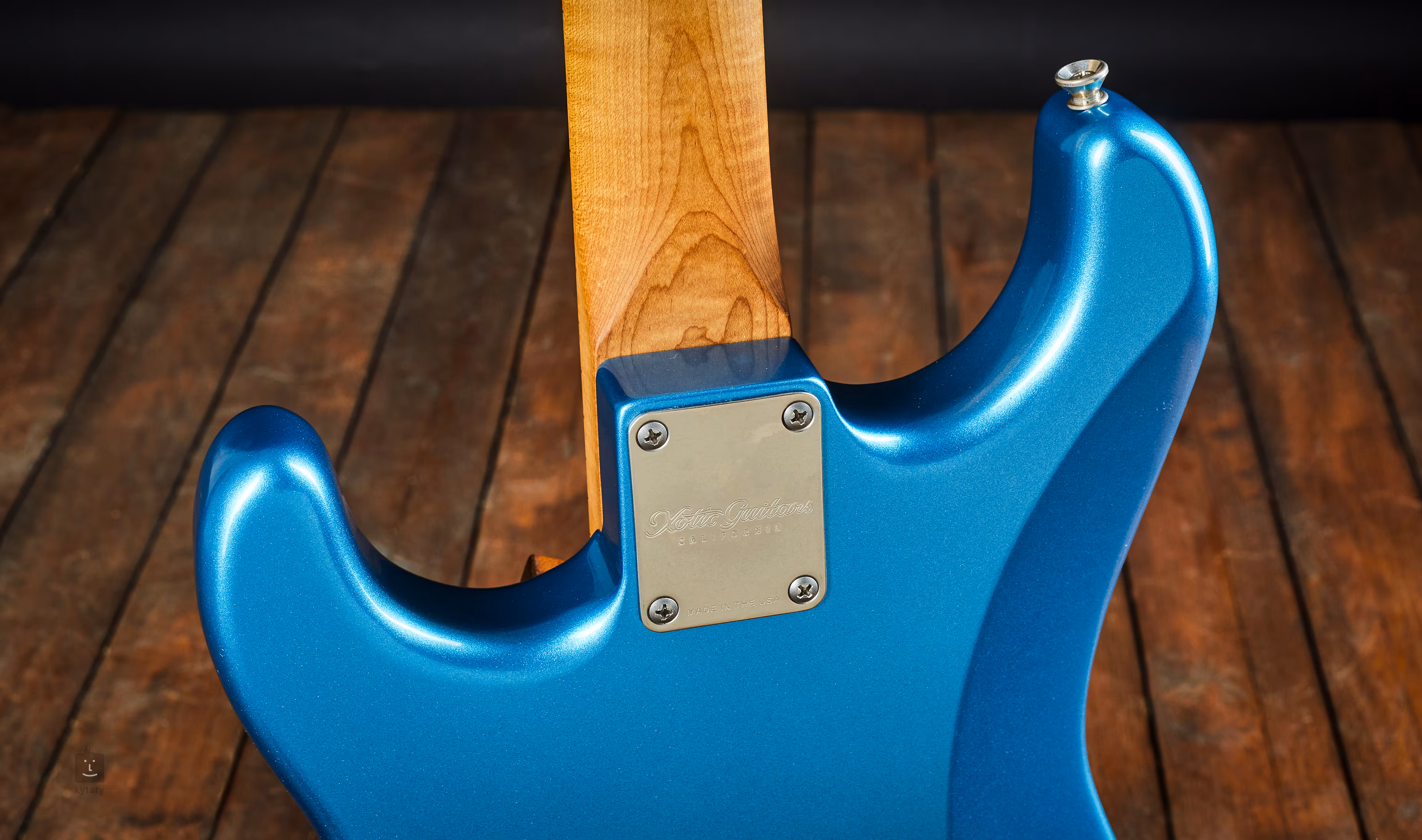 Butikové převzetí klasického tvaru stratocaster, tělo z olše je dokončeno ve svěží Lake Placid Blue barvě s úpravou relic "Light Aged". S nitrocelulózovým lakem má tělo prostor k dýchání a tendenci přirozeně dál získavat patinu.