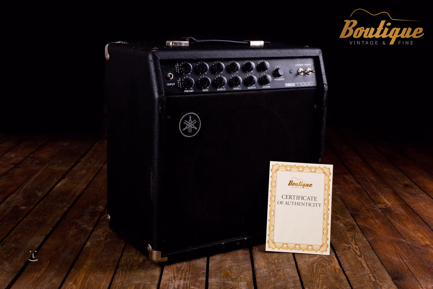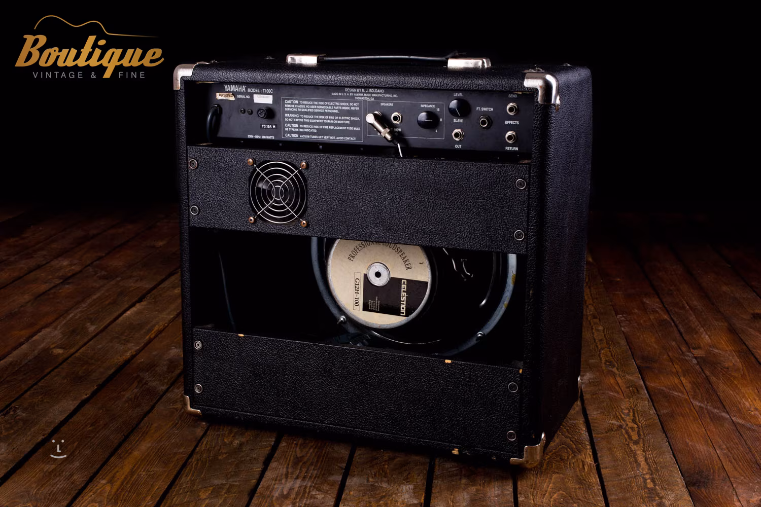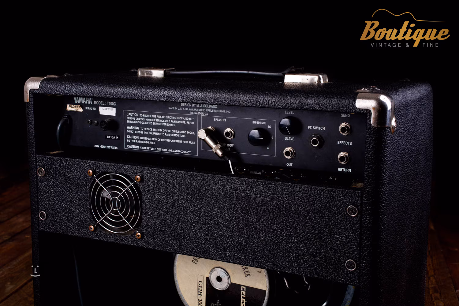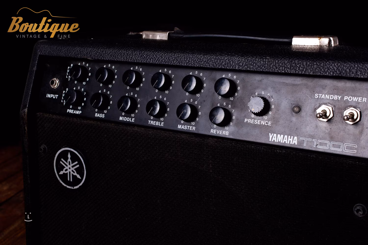Celolampové kombo Yamaha T100C je vyrobeno v USA, umí vyvinout 100W výkonu za pomocí 4 výkonových lamp 6L6. V preampu najdete 7 lamp 12AX7, které umí čistý fenderovský zvuk na jednom kanále a Soldano high-gain a druhém. Aparát je osazený 12" reproduktorem Celestion G12 o síle 100W. Zvuk nastavíte pomocí korekcí a prostor můžete přidat díky povedenému reverbu.