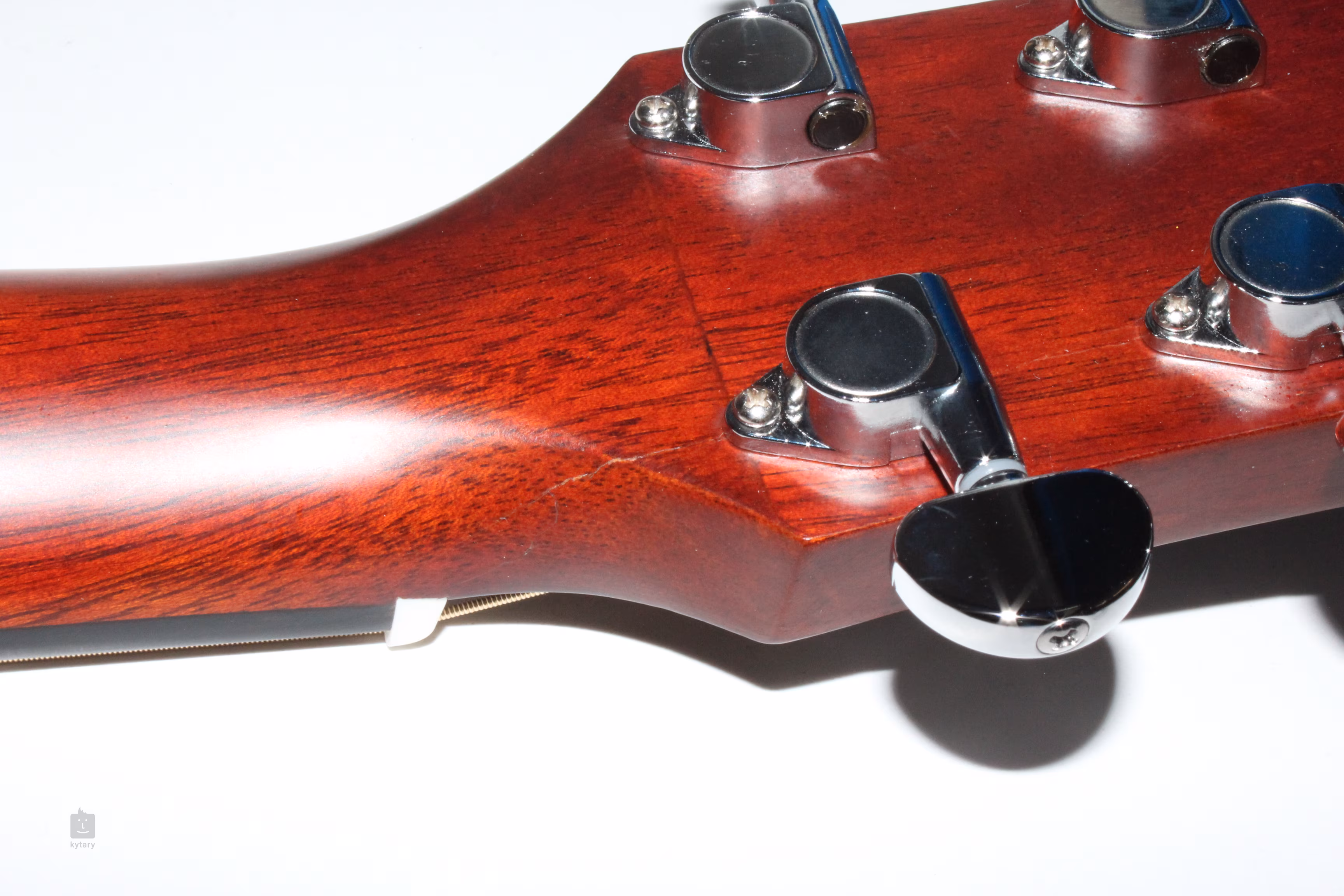 Prasklina v krku u hlavy nástroje, odborně zalepeno kytarářem. Viz foto.