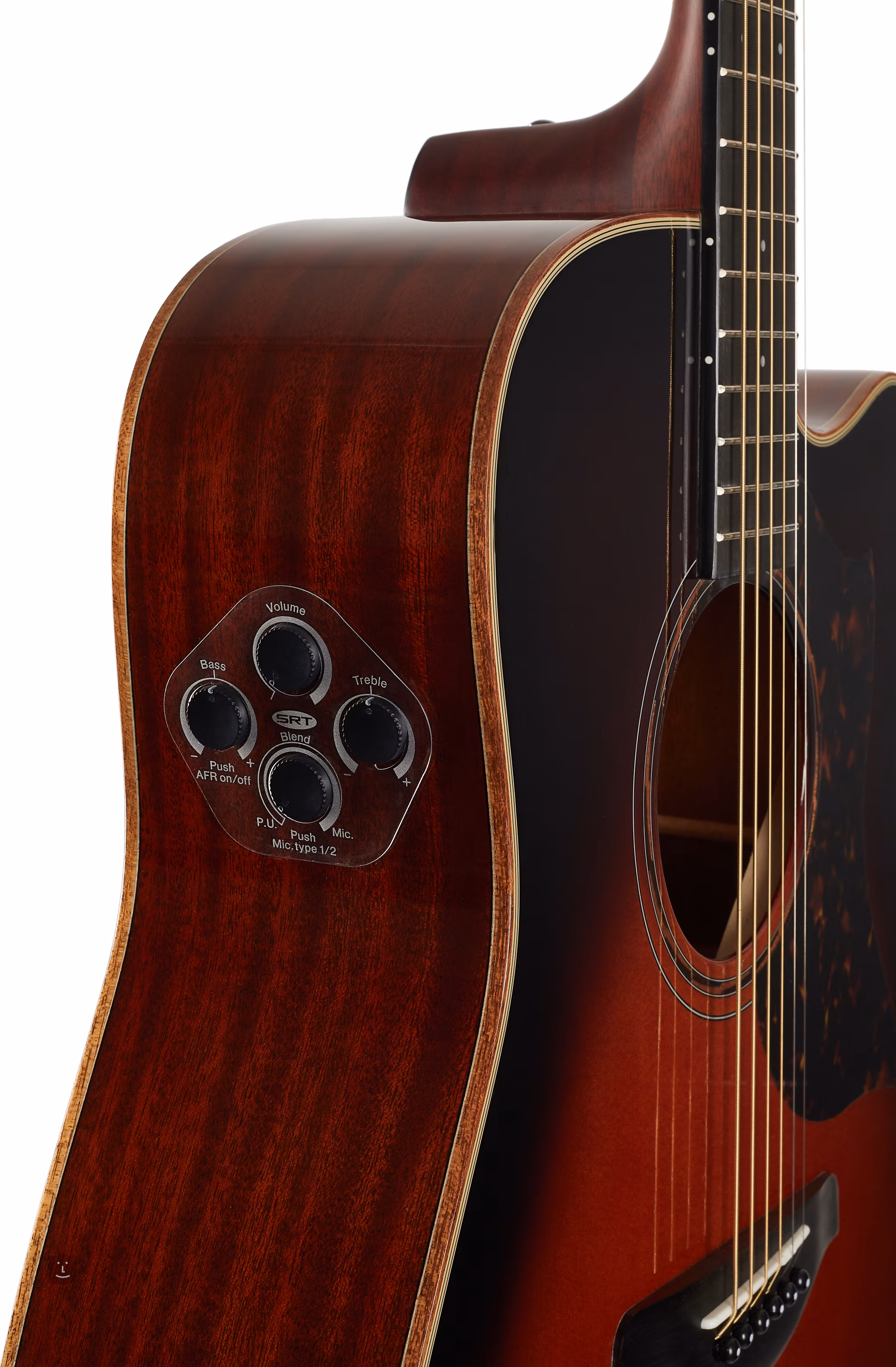 Elektronika SRT2 (Studio Response Technology) s ovládacími prvky diskrétně umístěnými do lubu kytary vám umožní nastavit poměr piezo/mic snímání, kdy průraznější zvuk piezo snímače SRT zkombinujete (či úplně nahradíte) jednou ze dvou volitelných simulací mikrofonního snímání (Mic Type 1: Neumann KM56, Mic Type 2: Royer R122).