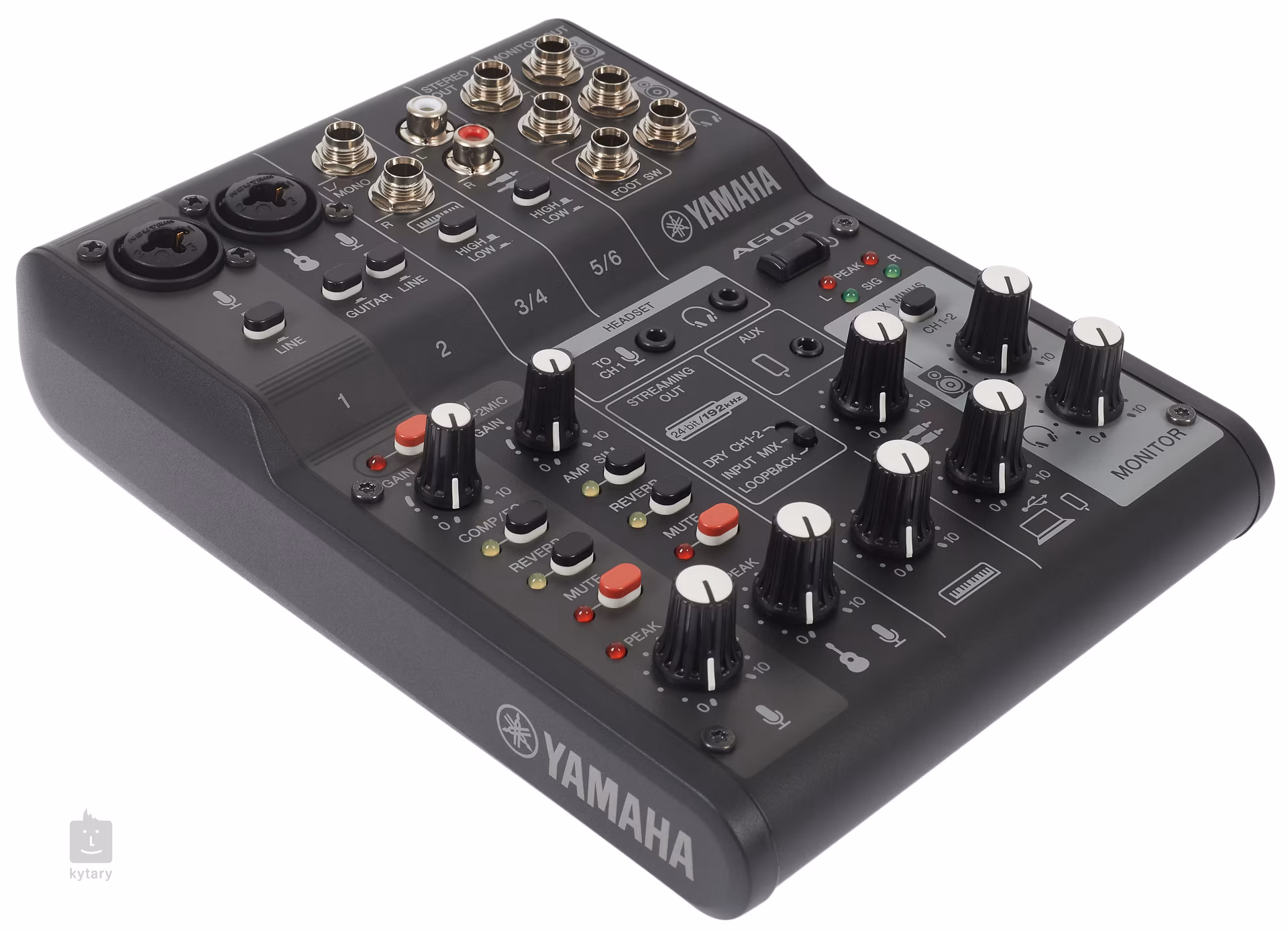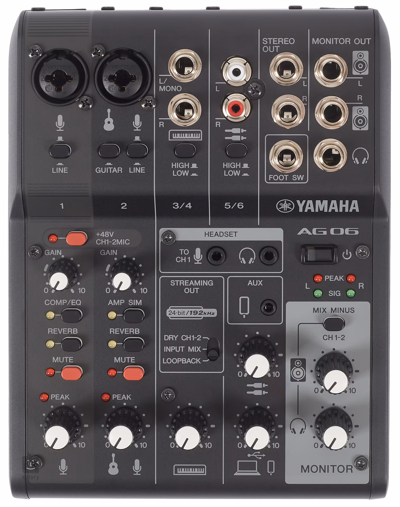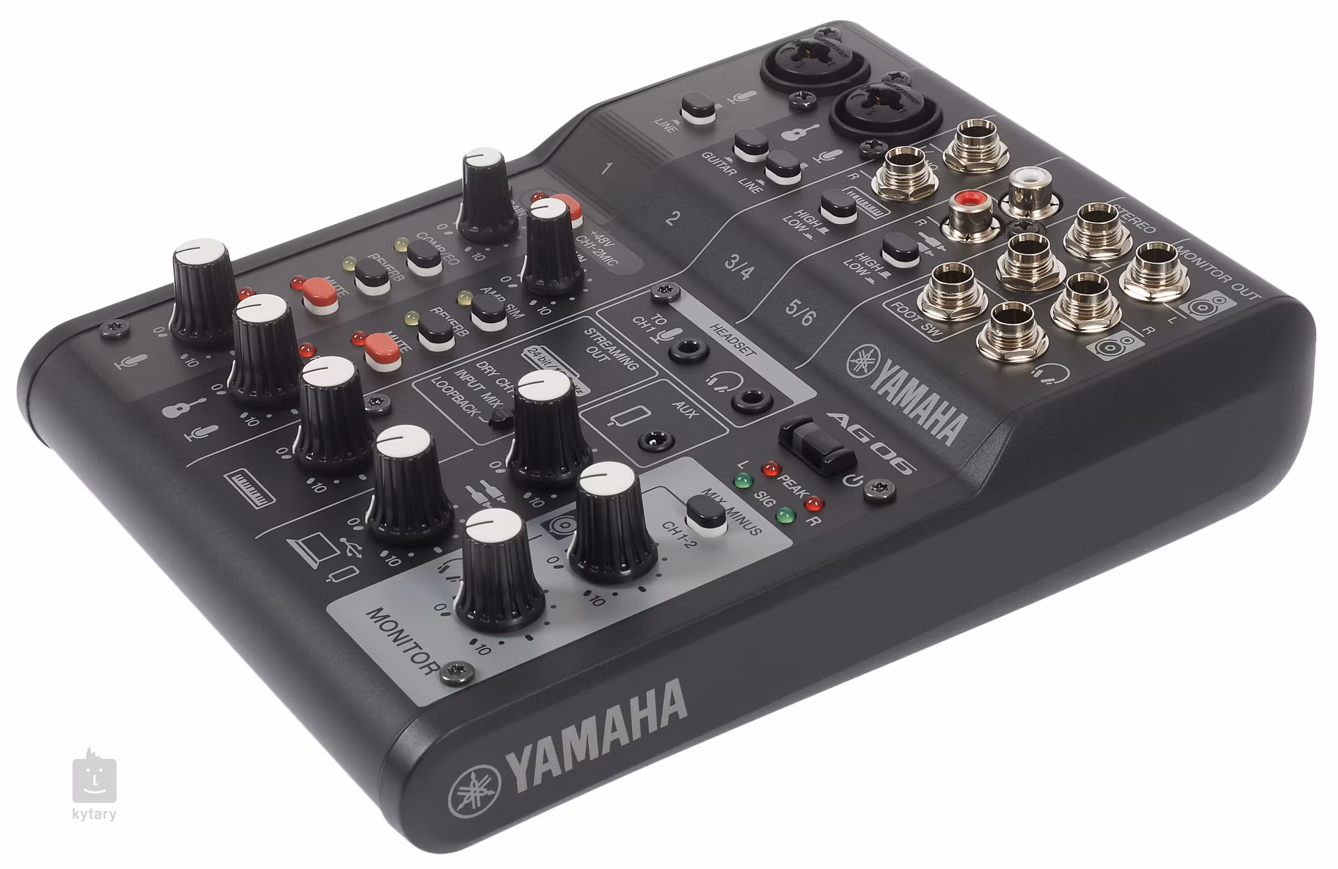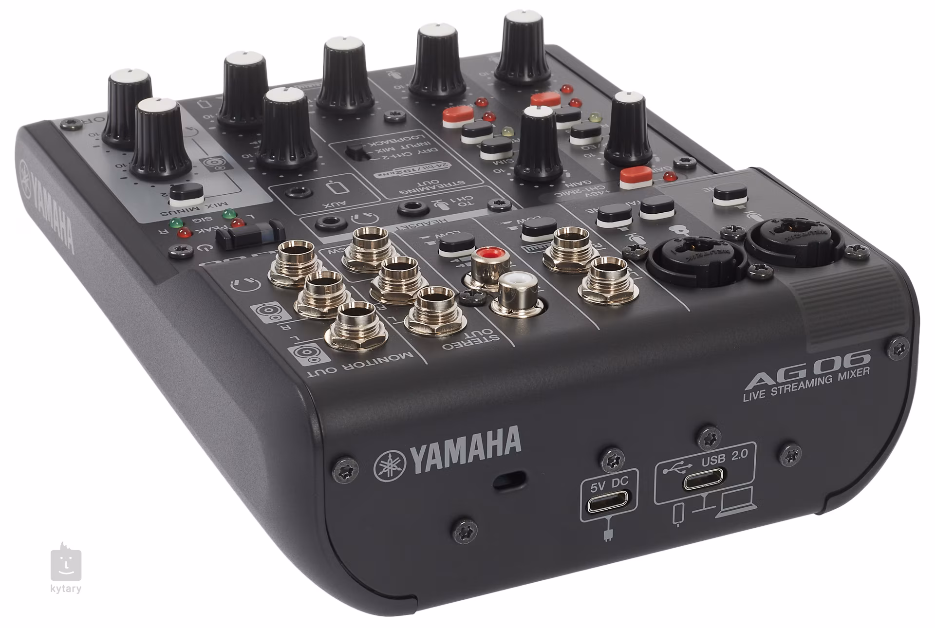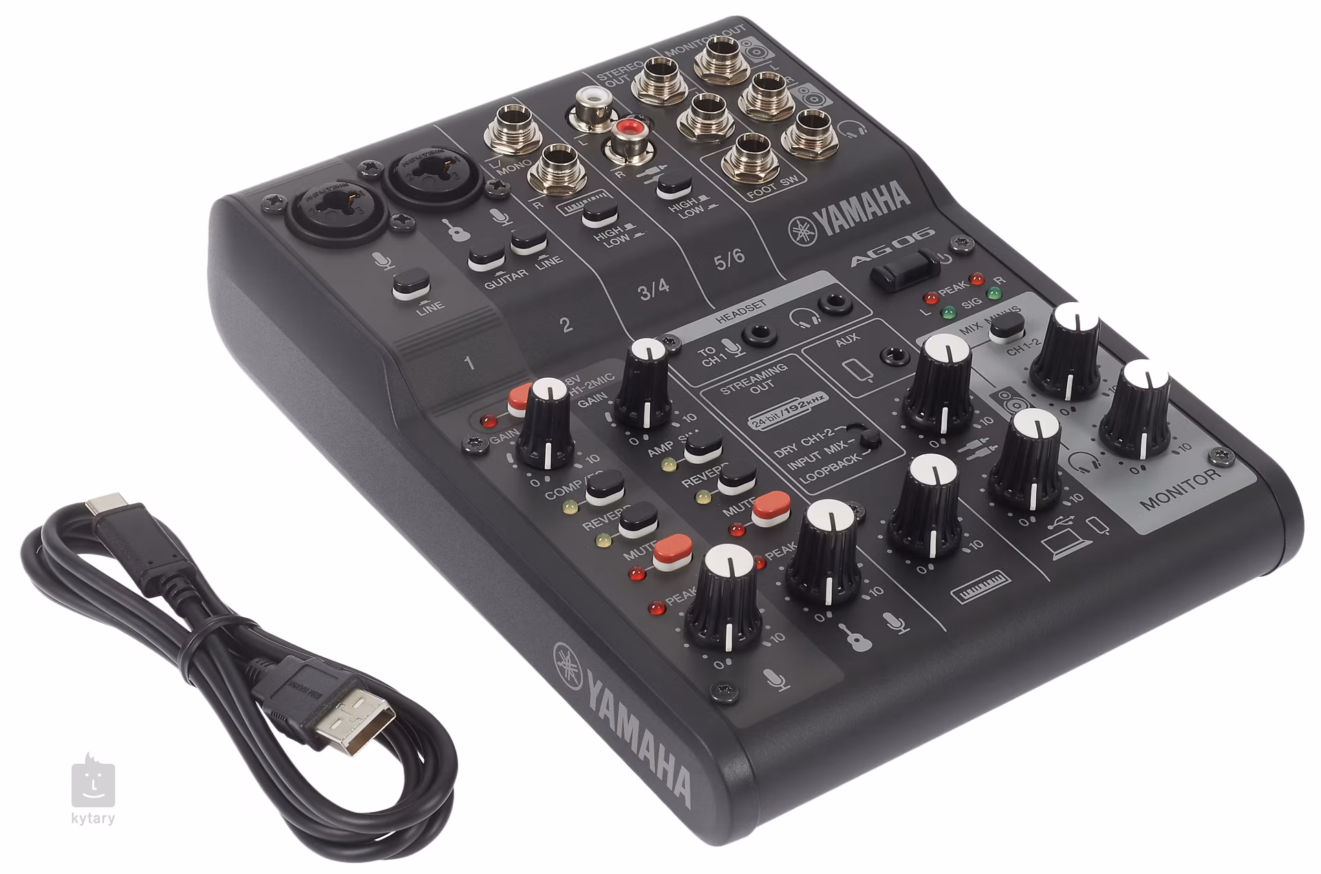 AG06 mk2 nabízí dva kombinované XLR/TRS vstupy, stereo linkové vstupy pro klávesy, nebo RCA či AUX pro hudební přehrávače, gramofony a syntezátory. O výstup se potom postarají dva linkové stereo výstupy (Stereo Out/Monitor Out), sluchátkový výstup a speciální konektory s mini Jackem pro Headset sadu. Funkce Loopback umožňuje audio vstup zasílat zpět do vašeho počítače, iPadu nebo chytrého telefonu, a smíchat jej tak s audiem z počítače, iPadu nebo chytrého telefonu. Součástí balení jsou i licence na stažení WaveLab Cast (pro podcasting nebo pro editování audia ve vašem video obsahu) a také Cubase AI (pro úkoly vyžadující základní hudební produkci, včetně nahrávání, editování, míchání a další). Napájení zařízení probíhá přes USB kabel (součástí balení).