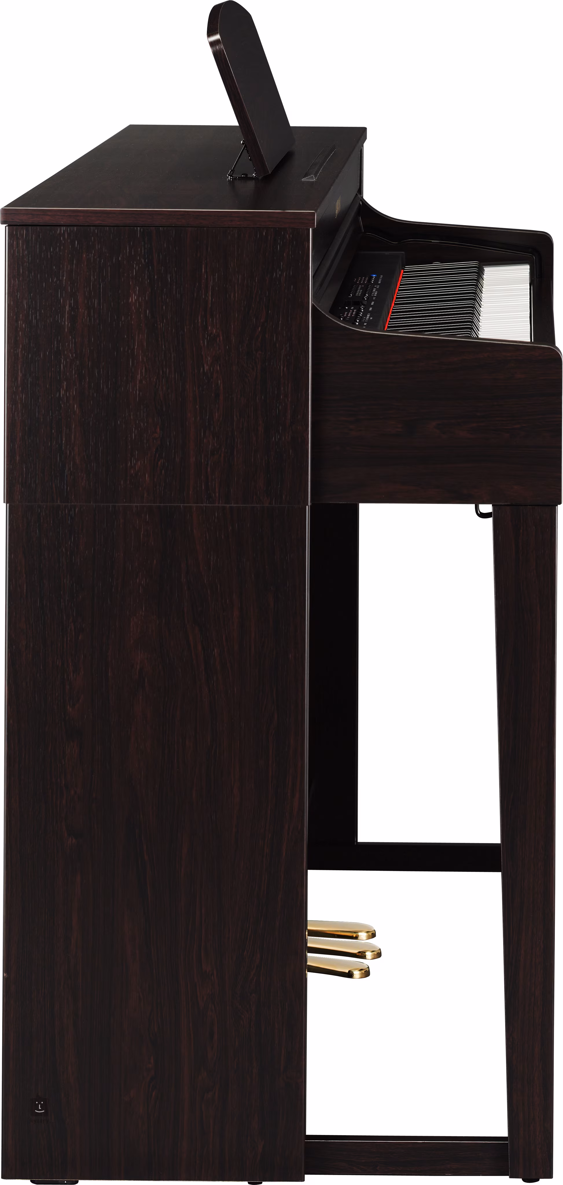 Ovládací panel lze diskrétně schovat pod kryt klaviatury. Toto ještě více přibližuje vzhled nástrojů CLP série 400 ke vzhledu klasického akustického piana.