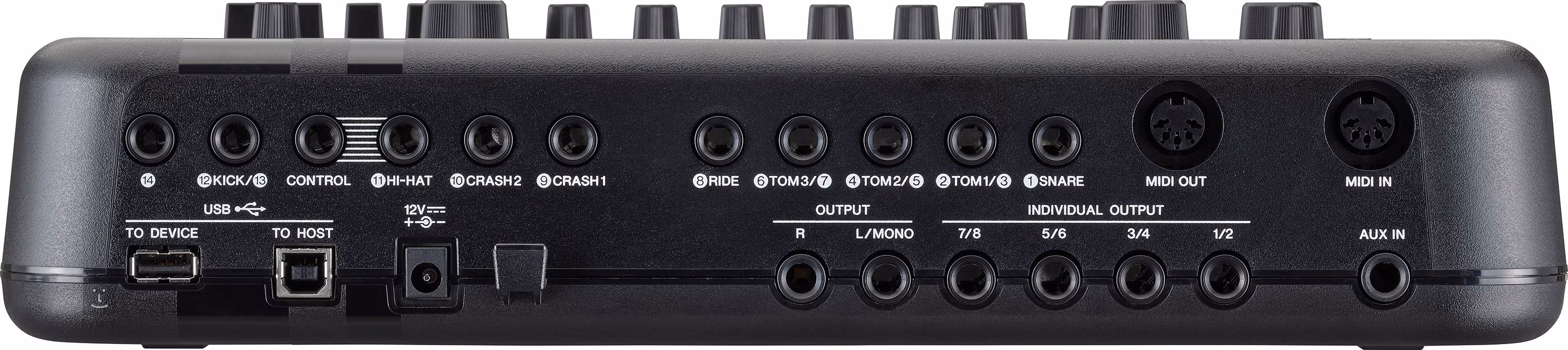 Samozřejmě nechybí ani flexibilní konektivita, najdete zde USB Midi i 5 pin Midi, USB výstup pro mobilní zařízení i počítač, levý a pravý Master výstup, čtyři individuální stereo výstupy, dva výstupy pro sluchátka či dva aux vstupy.