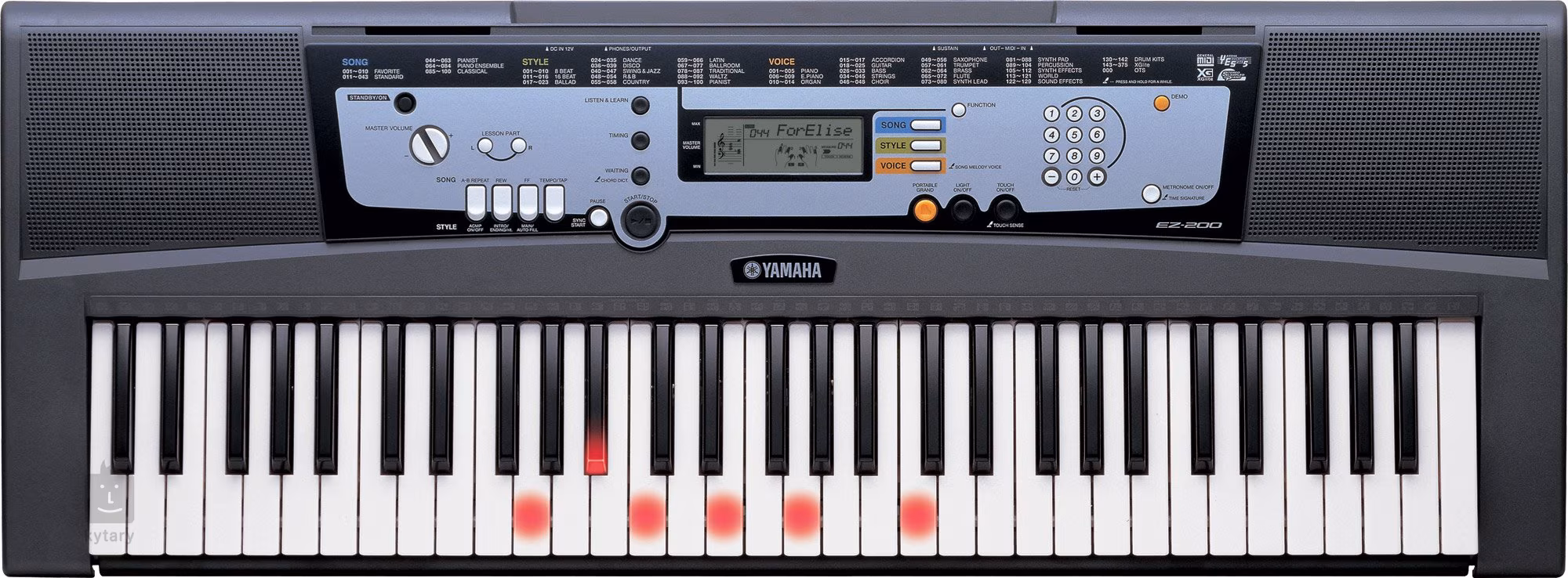 EZ-200 je keyboard s rozsahem klaviatury 61 kláves, s dynamikou úhozu a s funkcí podsvětlení kláves, díky čemuž je výuka hry na nástroj zábavou. Ve výbavě je 375 vysoce kvalitních zvuků různých nástrojů a 100 doprovodných stylů. Díky výukovému systému Yamaha (Y.E.S.) je výuka a cvičení mnohem zábavnější než kdykoli předtím. Jednoduše následujte světla a učte se hrát spolu s některou ze 100 vestavěných skladeb.