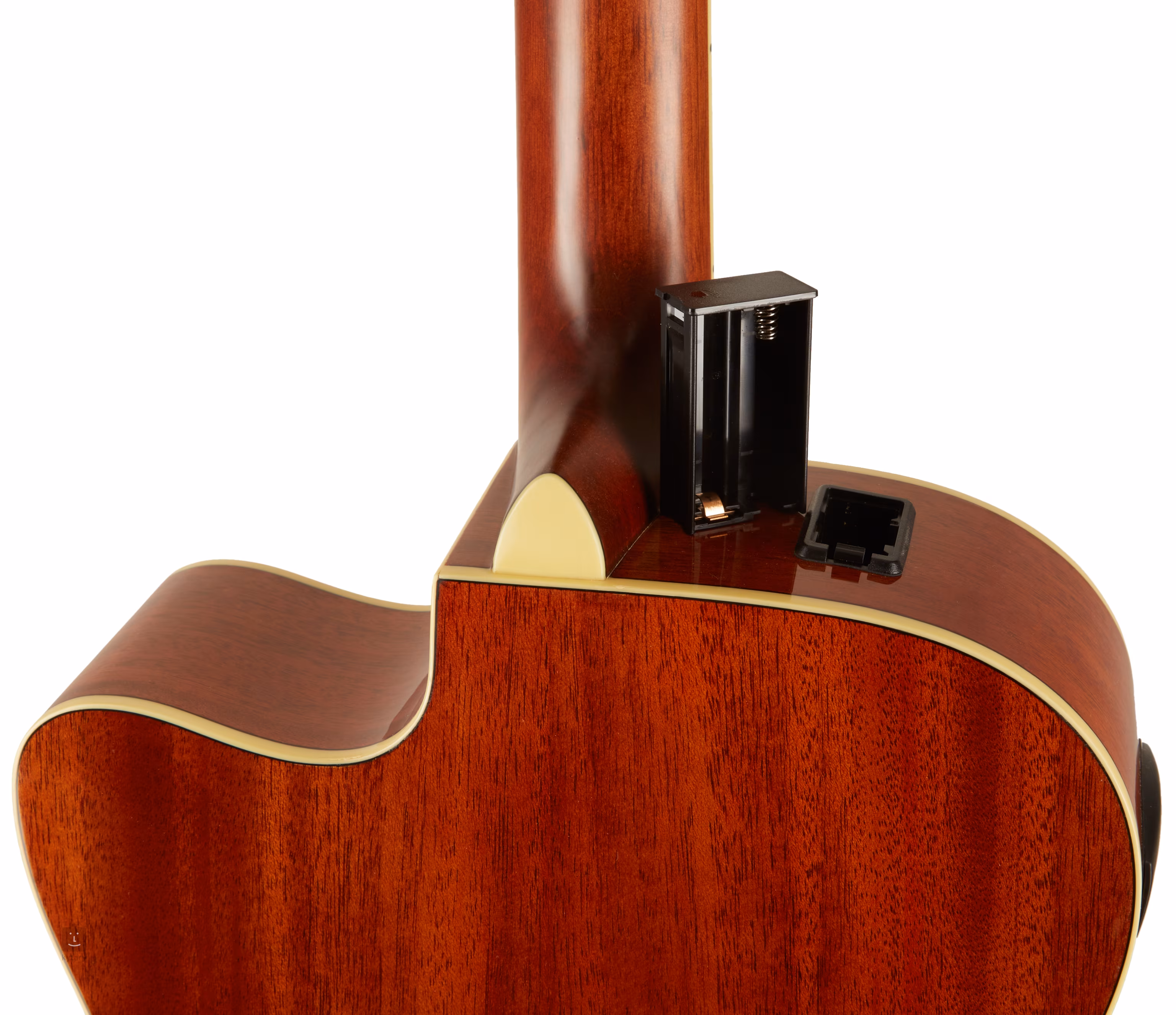 O zesílení akustického zvuku se stará firemní preamp s třípásmovým ekvalizérem a integrovanou ladičkou zabudovaný do lubu kytary a podkobylkový piezo snímač SRT. Ke krku ze dřeva nato je přilepen palisandrový hmatník osazený dvaceti pražci. Stabilitu ladění zaručuje uchycení strun přes sedlový a nultý pražec z plastového materiálu Urea ve firemních Die-Cast ladicích mechanikách a palisandrové kobylce. Stylový vzhled nástroje podtrhuje krémová lemovka těla, rozeta složená z černobílých linek a praktický pickguard z imitace želvoviny.