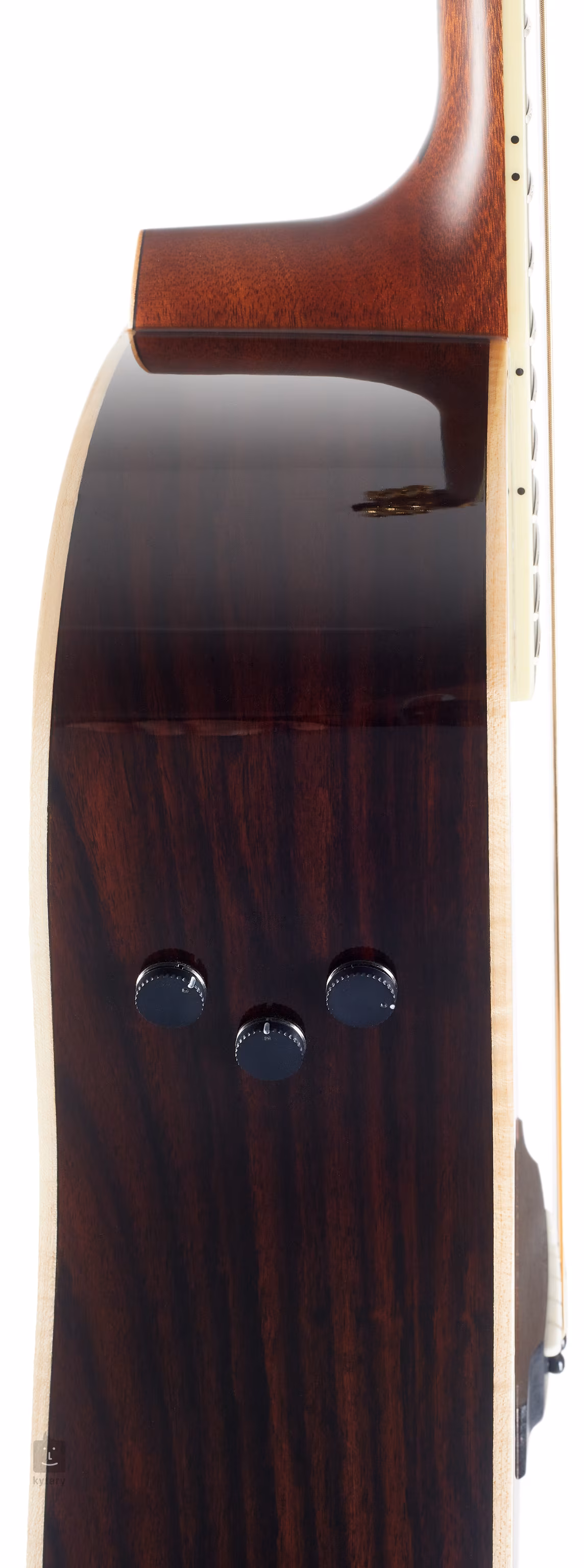 Struny jsou uchyceny přes sedlo a nultý pražec z materiálu Urea ve firemních Die-Cast ladicích mechanikách ve zlatém provedení a ebenové kobylce. Kvality nástroje podtrhuje transparentní pickguard, který chrání lesklý lak topu před poškrábáním a zároveň nenarušuje design kytary.