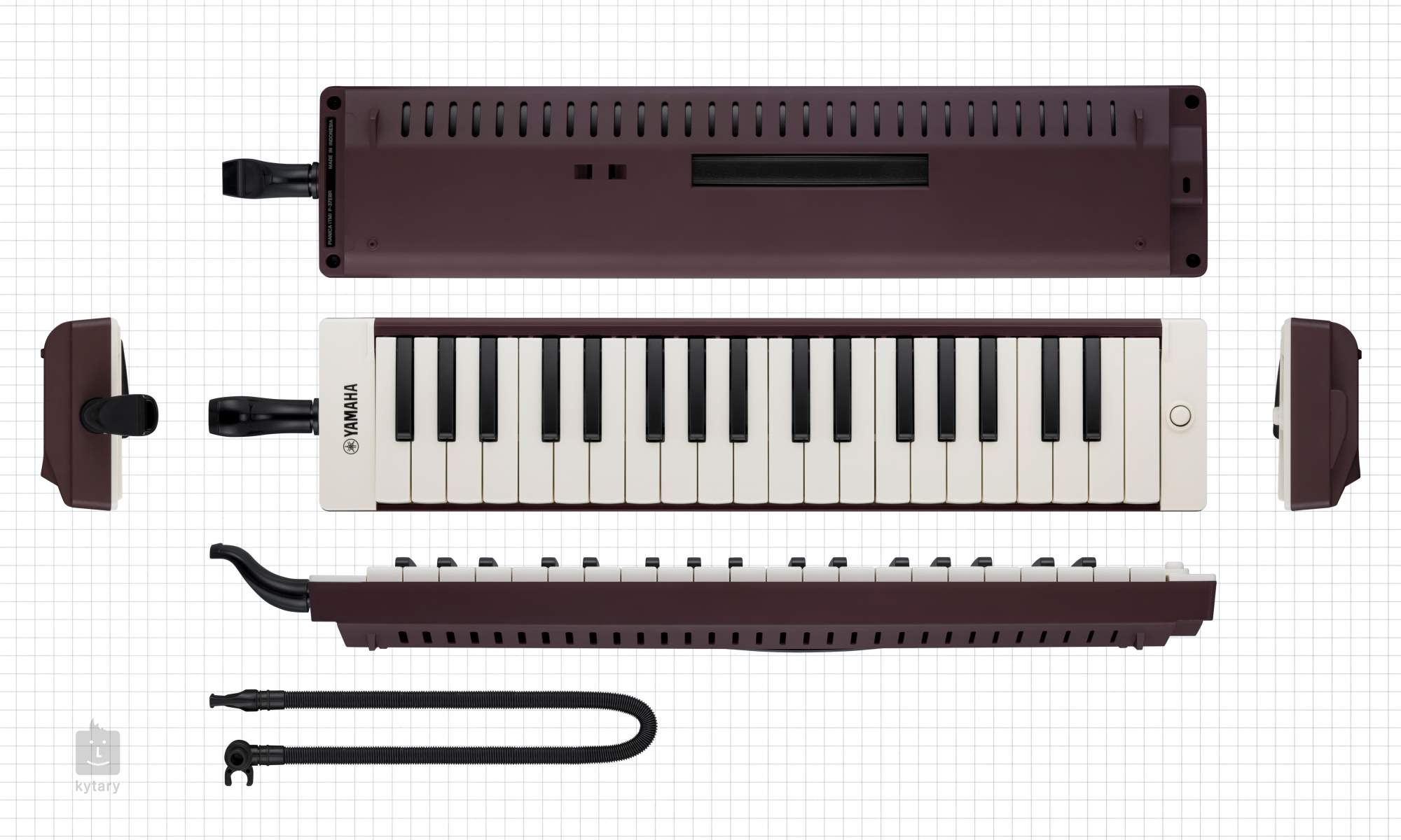 Pianica P-37E nabízí klaviaturu s 37 klávesami v klasickém černobílém designu a rozsah tří oktáv. Na této ploše již budete schopni zahrát náročnější, komplexnější, hudební kusy. Ergonomický tvar náustku a lehkého plastového těla (částečně zhotoveného z bioplastu EcoDear) zaručuje pohodlné hraní. Díky prodlužovací hadičce můžete melodiku položit na stůl či jiný předmět a hrát na ni jako na standardní klávesový nástroj.