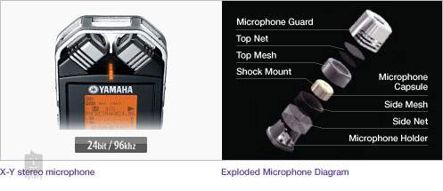 Mikrofon na kapesním záznamníku je nesmírně důležitým prvkem při určení výsledné kvality zvukového záznamu. Citlivost a pokrytí tohoto duálního X-Y mikrofonu je opravdu vynikající. Plně využívá rozlišení rekordéru 24bit/96kHz.