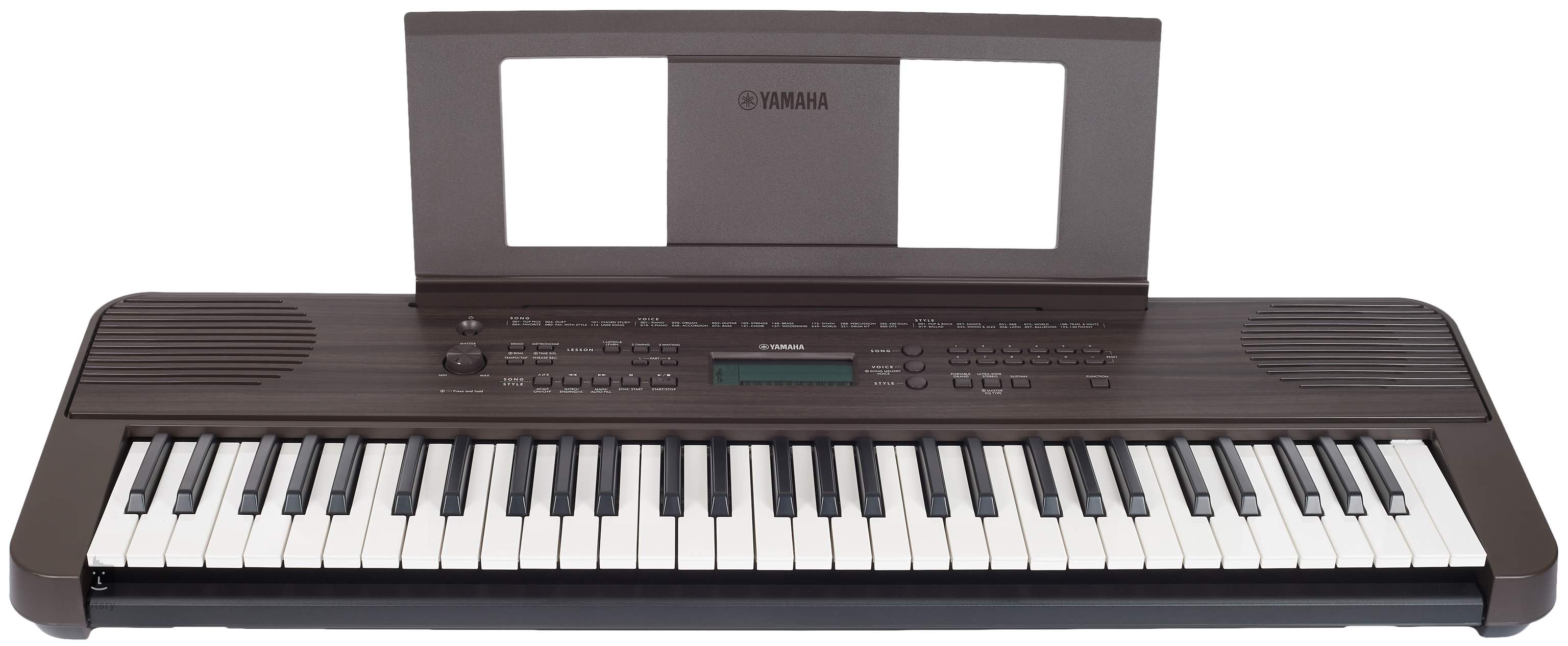 Rychle a jednoduše se můžete naučit celé písně pomocí výukového systému „Keys to Success“, svůj výkon si poté můžete nahrát do jednostopého rekordéru. Pokud si chcete zahrát s oblíbeným interpretem není nic jednoduššího než připojit váš přehrávač do audio vstupu a doprovázet váš idol jako naživo. Klaviaturu lze virtuálně rozdělit na dvě stejné části. Užijete si tak ještě více zábavy při hře s vašimi kamarády a povedenou skladbu si můžete nahrát přímo do kláves nebo do počítače, popřípadě iOS zařízení. Klávesy jsou snadno přenositelné, a kromě adaptéru můžete využít i napájení na baterie. PSR E360 v sobě ukrávají pár 12cm reproduktorů o výkonu 5W, pokud ovšem patří mezi noční tvory, můžete využít i sluchátkového výstupu, což ocení především vaši sousedé nebo spolubydlící. Součástí balení je adaptér a notový stojan.