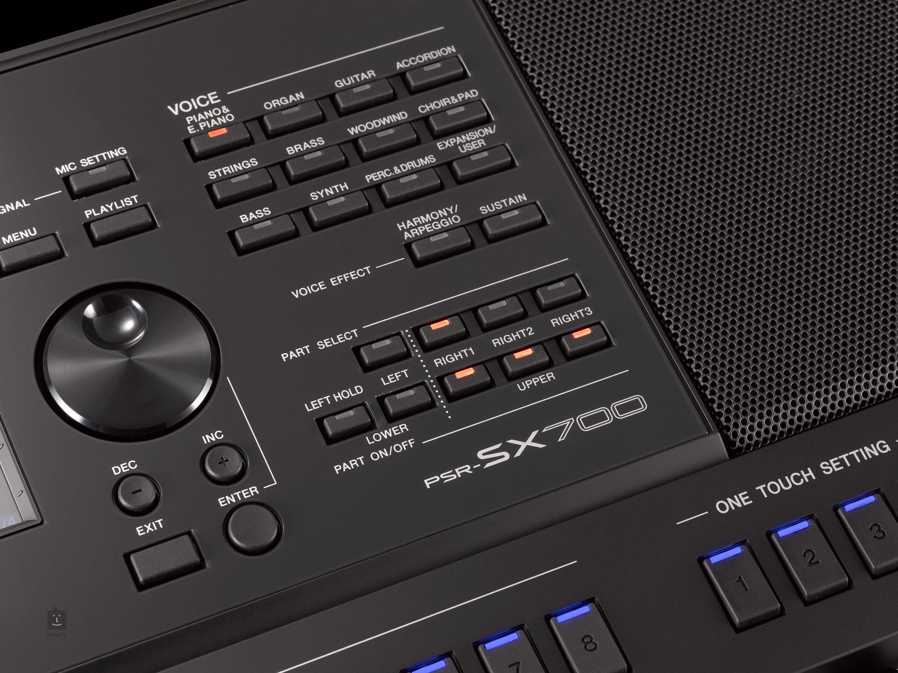 Nová řada profesionálních aranžérů PSR-SX navazuje na svého úspěšného předchůdce, který se stal vyhledávaným nástrojem skladatelů, producentů a hráčů na klávesové nástroje všech možných žánrů. Široká škála zvuků, doprovodů a rytmů vám poskytne maximální svobodu při tvorbě aranží, na živých koncertech potom oceníte intuitivní ovládání, možnost ukládání presetů nebo 7" barevný dotykový displej. Klávesy se dočkaly modernějšího designu, vylepšených DSP efektů a nově můžete kombinovat až tři různé zvuky najednou. Nová produktová řada PSR-SX nabízí klávesy s označením 700 a 900.