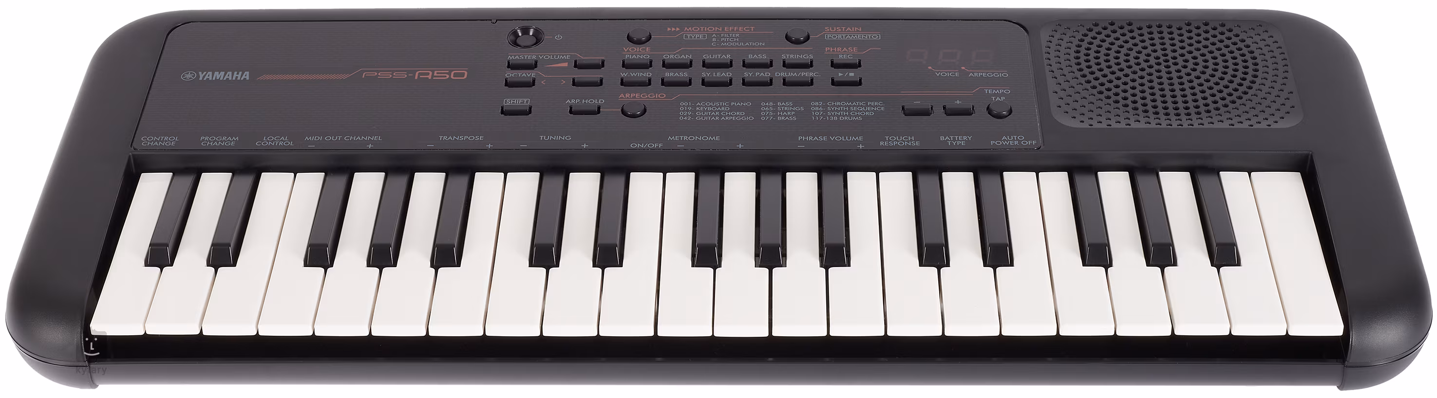 YAMAHA PSS A50 Nástroj je tvořen 37 vysoce kvalitními citlivými mini klávesami, v malé odolné konstrukci naleznete až 42 zvuků a 138 druhů Arpeggiátoru. Přímo do integrované paměti si můžete nahrát zvukový záznam vašeho hudebního nápadu, nebo loop na který budete následně vrstvit další melodie nebo vokály. A50 nabízí flexibilní konektivitu a přehledný intuitivní ovládací panel. Klávesy si jednoduše sbalíte do batohu a můžete s nimi zazářit na jam session v parku nebo obzvláštnit rutinní táborové písně u ohně prostřednictvím 8 cm reproduktoru s výkonem 1,4W. Klávesy je možné napájet pomocí baterie velikosti AA nebo přes USB port, lze je využít i jako MIDI kontrolér pro ovládání VST nástrojů.