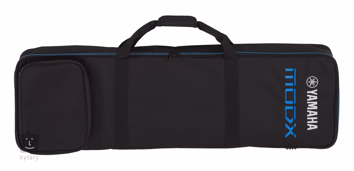 Polstrované pouzdro pro syntezátor Yamaha MODX 7 s ramenním popruhem, párem řemenů pro nošení na zádech a samozřejmě robustními ručními madly. Přední strana navíc obsahuje kapsu pro drobné příslušenství jako např. adaptér, sustain pedál, noty atd.