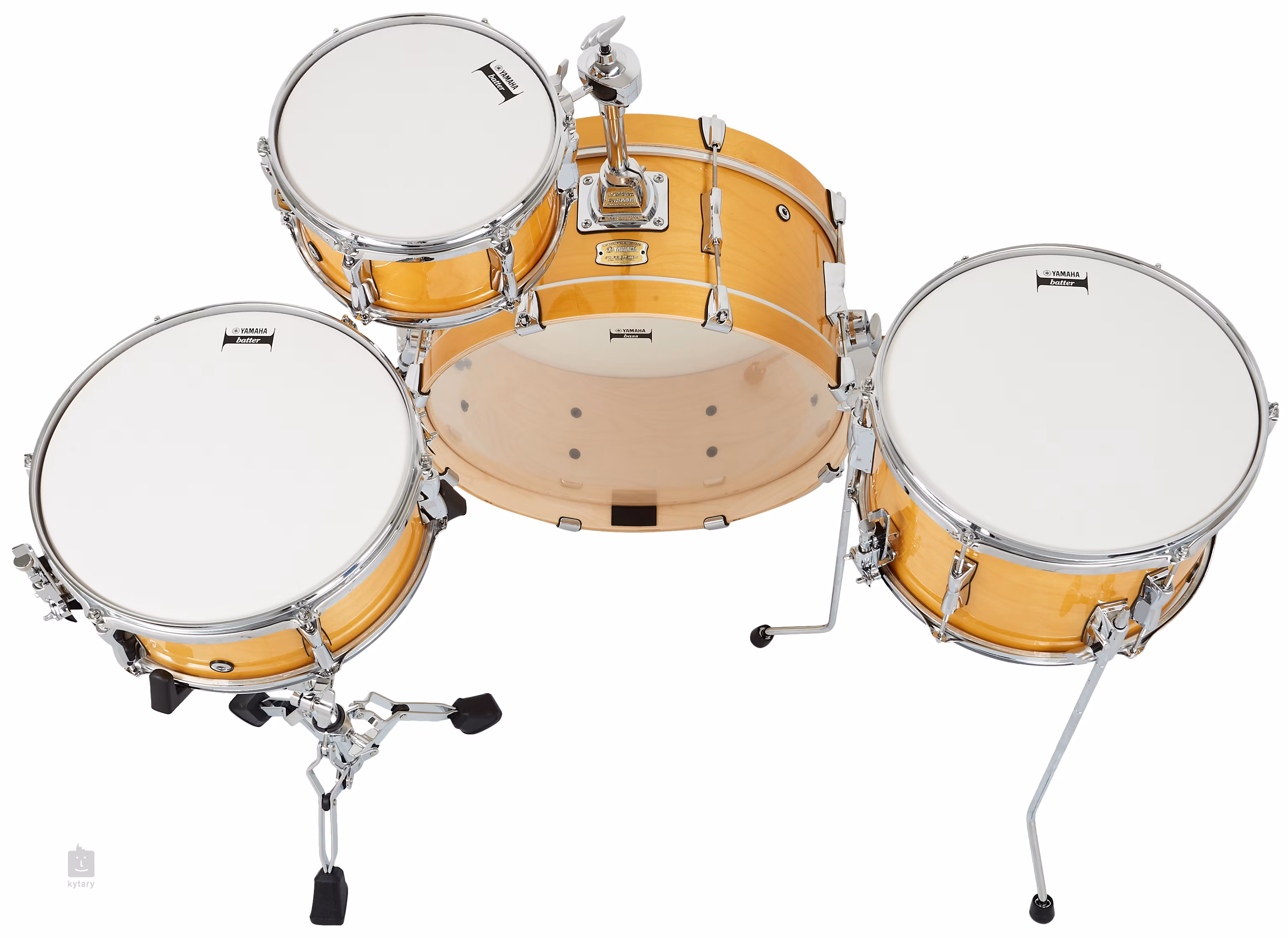 Yamaha Stage Custom Hip je kompaktní sada výborná pro busking, cestování nebo domácí cvičení. Korpusy jsou vyrobené ze šesti vrstev březového dřeva, které je klasickou volbou a vyniká silnými výškami a poctivými basy. Jsou osazené stříbrným hardwarem vhodně doplňující přirozenou barvu dřeva. Korpusy sou připevněné na držákách YESS, které minimalizují kontakt s korpusem, čímž dochází k prodloužení sustainu a lepší rezonanci bubnu.