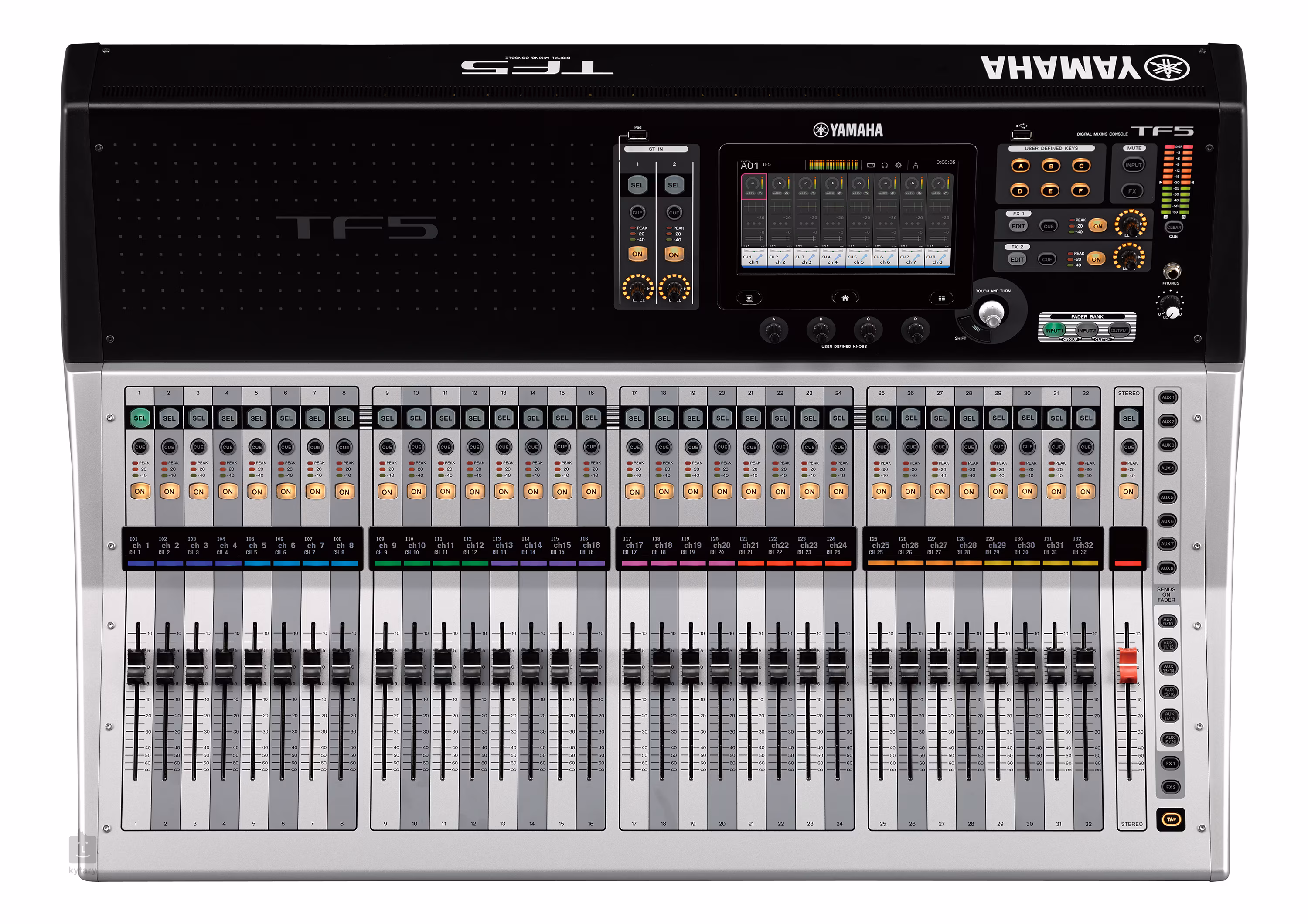 Yamaha TF-5 je největším mixážním pultem této série. Nabízí 33 motorizovaných faderů, 32 analogových vstupů a 16 analogových výstupů. Nechybí také expanzní slot pro kartu NY64-D.