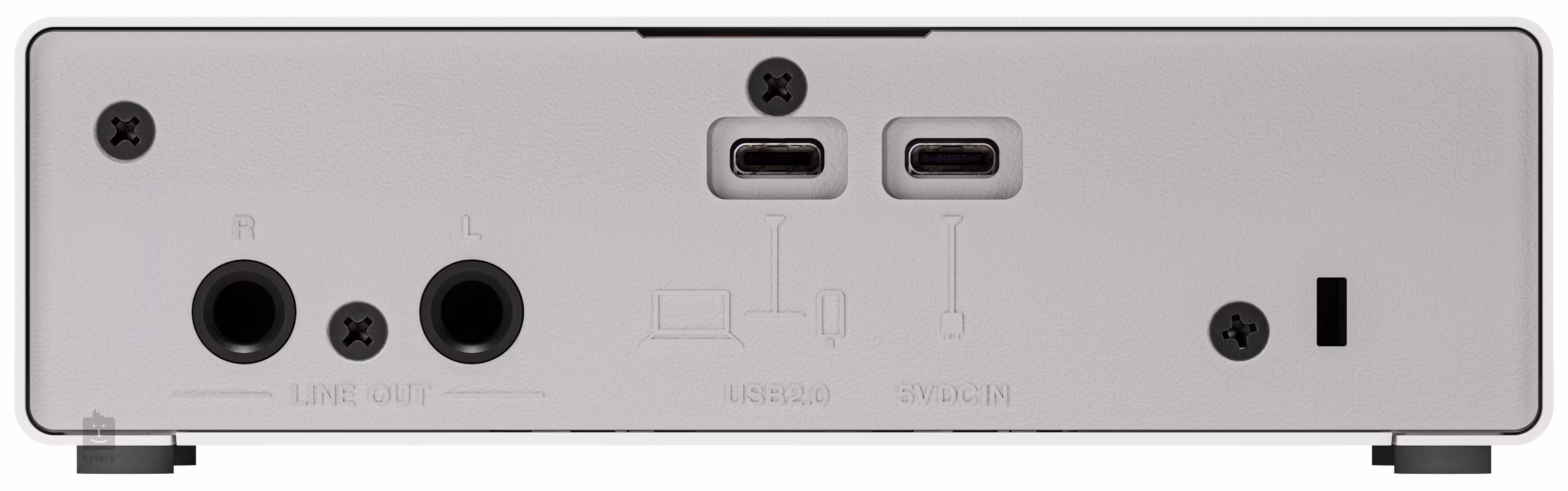 Rozhraní je vybaveno mikrofonním předzesilovačem Yamaha UR s +48V phantomovým napájením pro kondenzátorové mikrofony, jedním kombinovaným mikrofonním/linkovým vstupem s tlačítkem Mute a samostatným Hi-Z vstupem pro přímé připojení kytary či baskytary. Na výstupní straně nabízí 2 TRS linkové výstupy a sluchátkový výstup s nezávislým ovládáním hlasitosti, což umožňuje flexibilní monitoring i při práci na cestách.