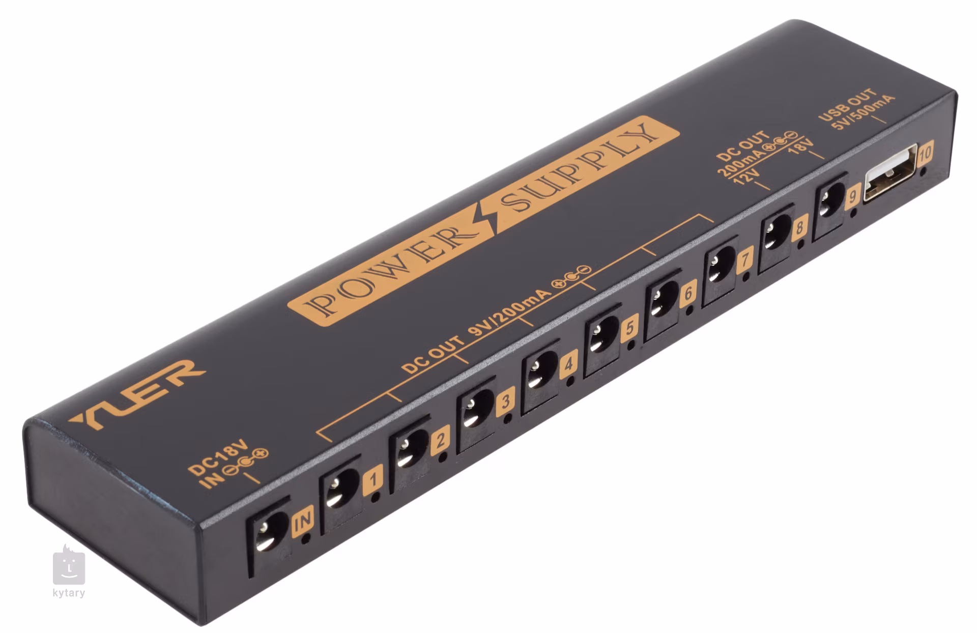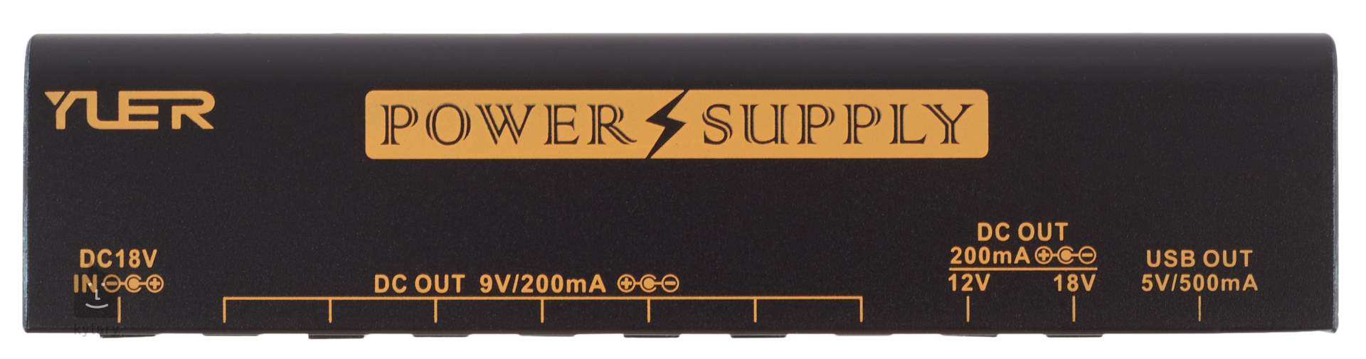 Cenově dostupný multiadaptér YUER PR-04 nabízí sedm 9V DC slotů s maximálním odběrem 200 mA pro napájení většiny běžných kytarových a baskytarových efektů. Pro energeticky náročnější pedály je zde 12V výstup (200 mA) a 18V výstup (200 mA). Pomocí 5V USB-A výstupu (500mA) si navíc nabijete i své mobilní zařízení. Každý z napájecích slotů disponuje LED diodou pro indikaci zkratu. Součástí balení je napájecí 18V adaptér, osm napájecích kabelů a páska se suchým zipem.