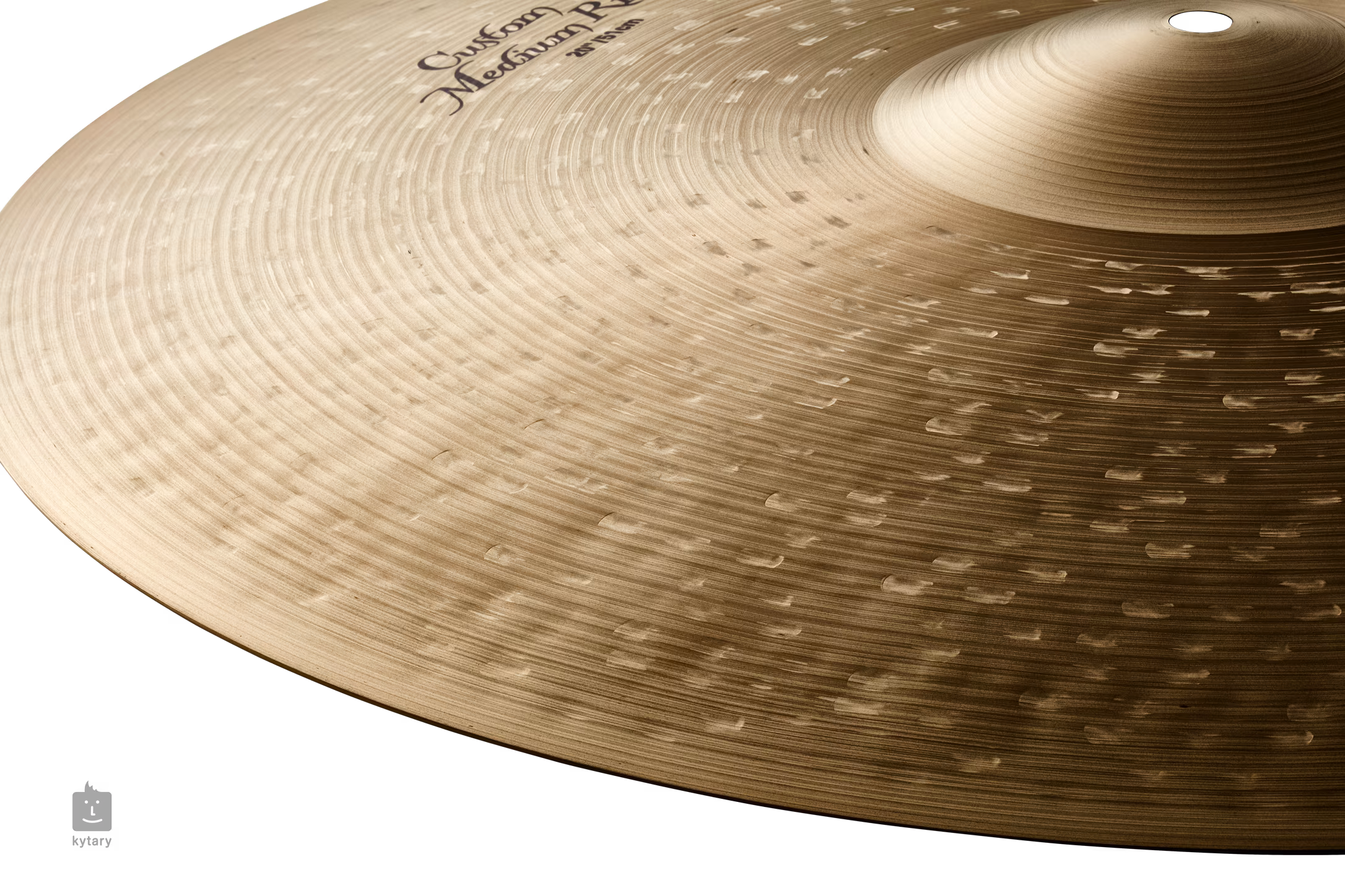 K Custom Medium Ride je činel střední váhy s povrchovou úpravou Traditional, temným až středně jasným hlubokým až středovým zvukem a dlouhým sustainem.