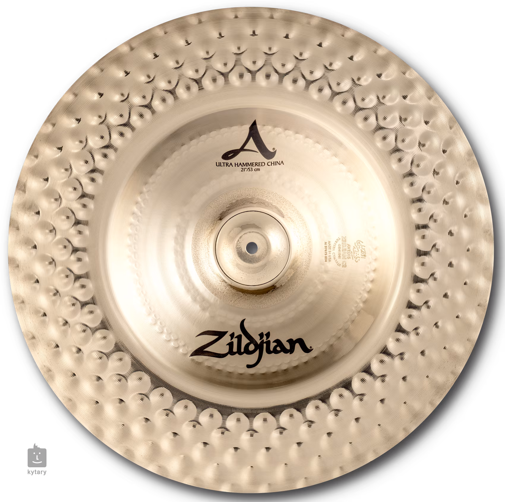 Ultra hammered China je tenký činel s povrchovou úpravou Brilliant, jasným středovým zvukem a krátkým sustainem. Díky speciálnímu zpracování vyniká ještě ostřejším zvukem než ostatní Chiny, čímž si vysloužila své místo v sadách metalových hráčů.