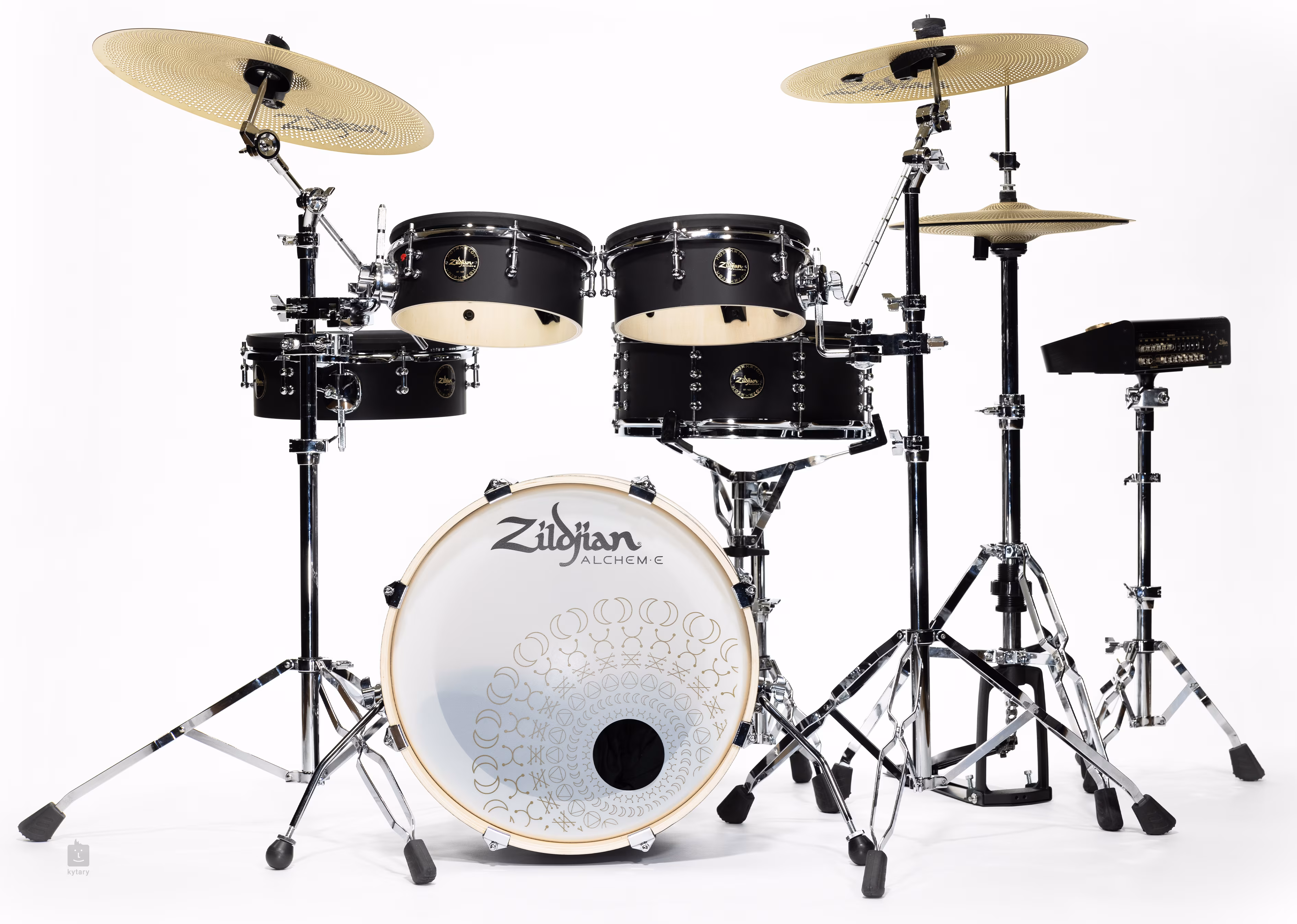 Společnost Zildjian představuje zcela novou řadu elektronických bicích souprav ALCHEM-E Series, která poskytuje jedinečný a pohlcující zážitek z hraní. Tato řada zahrnuje od kompaktnějšího modelu Bronze EX až po vlajkovou loď ALCHEM-E Gold EX. Každá souprava je vybavena revolučními činely Zildjian E-FAMILY a plně vybaveným bubenickým modulem Zildjian E-VAULT (ZEV1), který přináší špičkovou citlivost a reakci díky nejmodernější konfiguraci. Bez ohledu na to, zda jste začínající bubeník nebo zkušený profesionál, série ALCHEM-E nabízí řešení pro každého. Soupravy ALCHEM-E Series se mohou pochlubit bubny z kombinace dřev topol/basswood, které nejenom, že skvěle vypadají, ale také oceníte jejich kompatkní velikost. Činely a bubenický modul jsou vyrobeny ve slévárně v Norwell, MA, a jsou vybaveny pokročilou senzorovou technologií, která zajišťuje vynikající citlivost a odezvu. Zildjian E-VAULT, nový elektronický bubenický modul, přináší revoluční autenticitu zvuku, která vás úplně pohltí. Modul nabízí rozsáhlou knihovnu vysoce kvalitních zvuků bicích, činelů a perkusí a umožňuje přístup téměř k celému katalogu činelů Zildjian. Uživatelé mohou tvořit a aktualizovat své ideální sestavy a upravovat osobní zvuk pomocí intuitivní navigace a prémiového 5" barevného dotykového displeje. Soupravy ALCHEM-E, vybavené činely Zildjian E-FAMILY, poskytují nejen dynamické a realistické zážitky, ale také vynikající možnosti pro kreativní hraní a nahrávání. Sada se skládá z 18'' kopáku, 14'' flor tomu, 12'' snare bubínku, dvou 10'' tomů a tří činelů - 14'' hi-hat, 16'' crash a 18'' crash/ride. Samozřejmostí je sada hardware. V balení naopak nenajdete bubenickou stoličku, stojany na hi-hat a snare a pedál k basovému bubnu. Po zakoupení bicí soupravy je potřeba aktualizovat modul na stránkách společnosti Zildjian, kde najdete i přehledný návod.