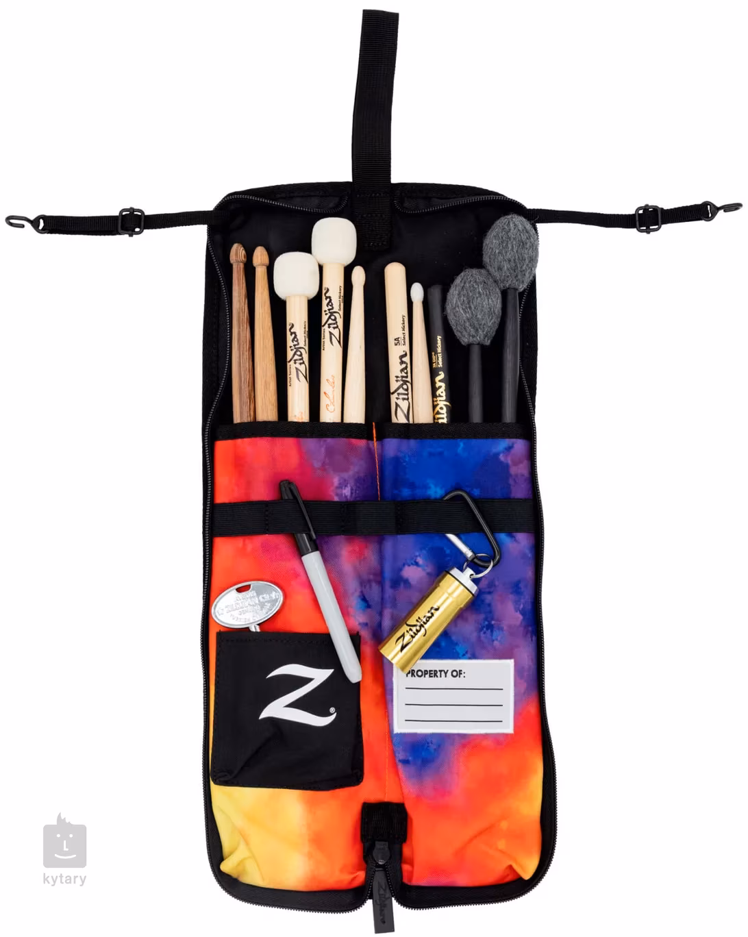 Legendární americká společnost Zildjian přichází s praktickým a designově velmi zajímavým obalem na bubenické paličky. Je vyrobený z voděodolného a pevného nylonu, disponuje poutkem na přenášení a zároveň je polstrovaný pro maximální ochranu. Vnitřní prostor pojme až pět párů paliček a disponuje kapsičkou například pro ladící klíč. Samozřejmostí jsou pak nastavitelné popruhy s háčky pro zavěšení na tomy.