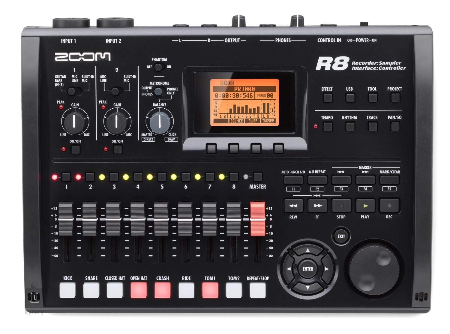 R8 je nejmenším z rodiny moderních multistopých rekordérů značky Zoom. Jedná se o osmistopý rekordér s možností nahrávání dvou stop současně v kvalitě 16/24-bit/44.1/48kHZ audio formátu WAV. Kromě funkce rekordéru poslouží i jako audio rozhraní a kontroler pro DAW a pad sampler a generátor bicích doprovodů.