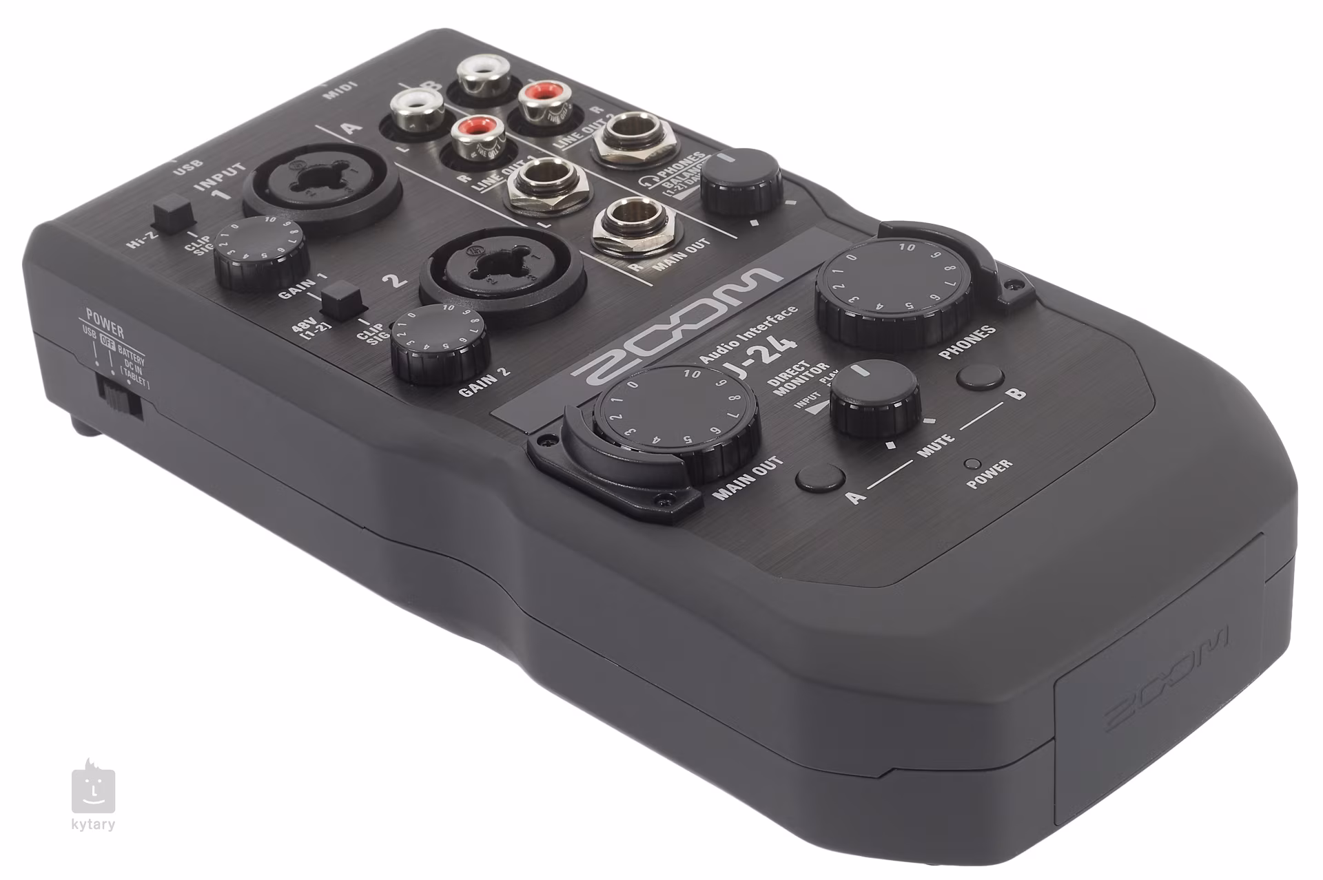Zoom U-24 je velmi kompaktní zvuková karta s kterou můžete pořizovat nahrávky ve studiové kvalitě doslova všude. Nabízí dva vstupy, čtyři výstupy a MIDI I/O, takže k ní připojíte mikrofony, linkové vstupy, nástroje nebo klávesy a kontroléry. Samozřejmostí je fantomové napájení a přepínač Hi-Z pro přímé připojení kytary na obou vstupech. Všechny analogové vstupy a výstupy mají ovladač gainu/hlasitosti.