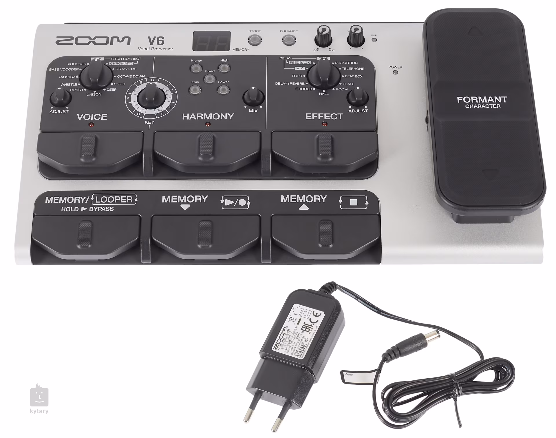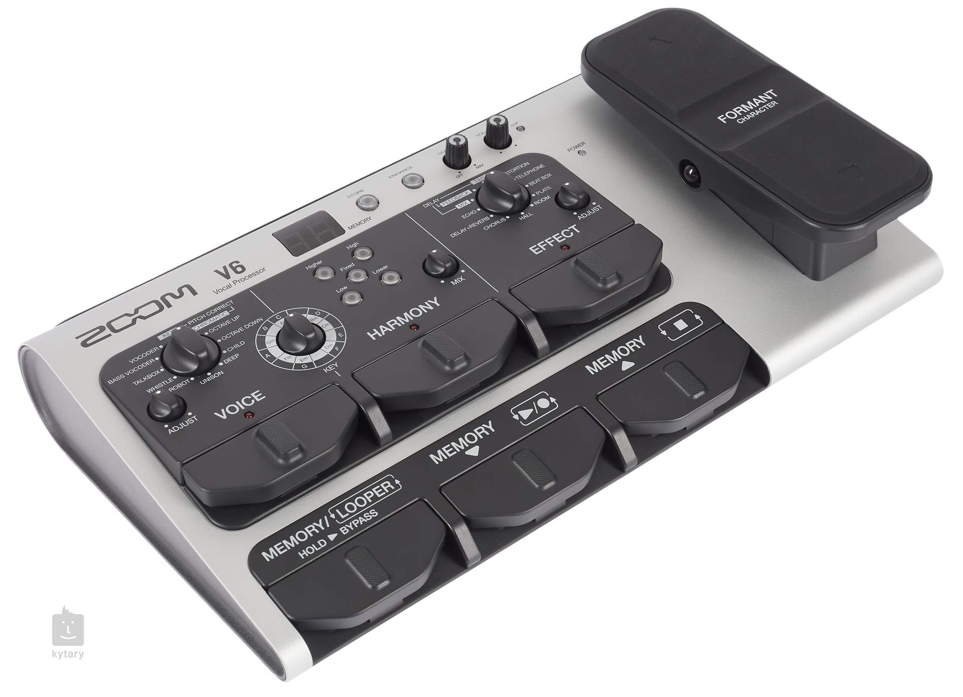 Vokálový procesor V6-SP od Zoom vhodný pro všechny zpěváky a muzikanty, kteří chtějí obohatit svoje vokálové party zajímavými efekty a modulacemi. K dispozici budete mít přehledný ovládací panel rozdělený do třech sekcí. Voice vám nabídne až dvanáct vokálních efektů, od jednohlasých, přes Octaver až po Vocoder. Harmony vám umožní vytvářet až trojhlasé party v durových a mollových tóninách. Effect vám potom poskytne 10 efektů studiové kvality, jako např.: Delay, Chorus, Reverb, nebo Telephone a Beatbox.